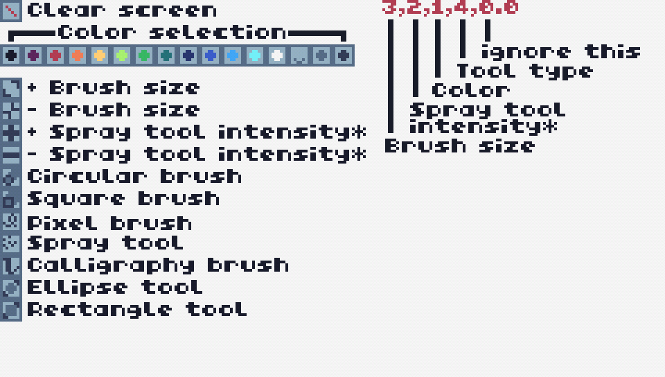 A painting program with 7 tools, a fixed palette, and no way to export (except taking screenshots, always works)